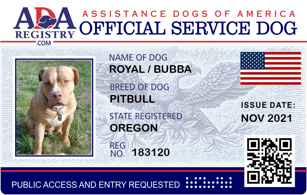 Service Dog Registration for Royal / Bubba