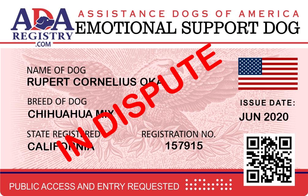 Emotional Support Dog Registration for Rupert Cornelius Oka