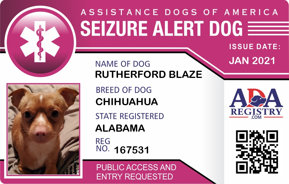 Seizure Assistance Dog Registration for Rutherford Blaze