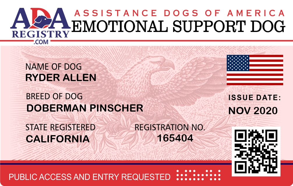 Emotional Support Dog Registration for Ryder Allen
