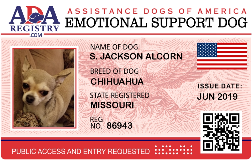 Emotional Support Dog Registration for S. Jackson Alcorn