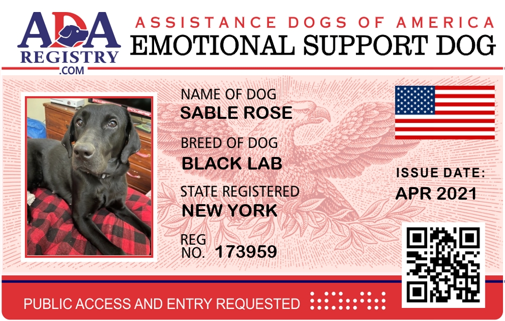 Emotional Support Dog Registration for Sable Rose