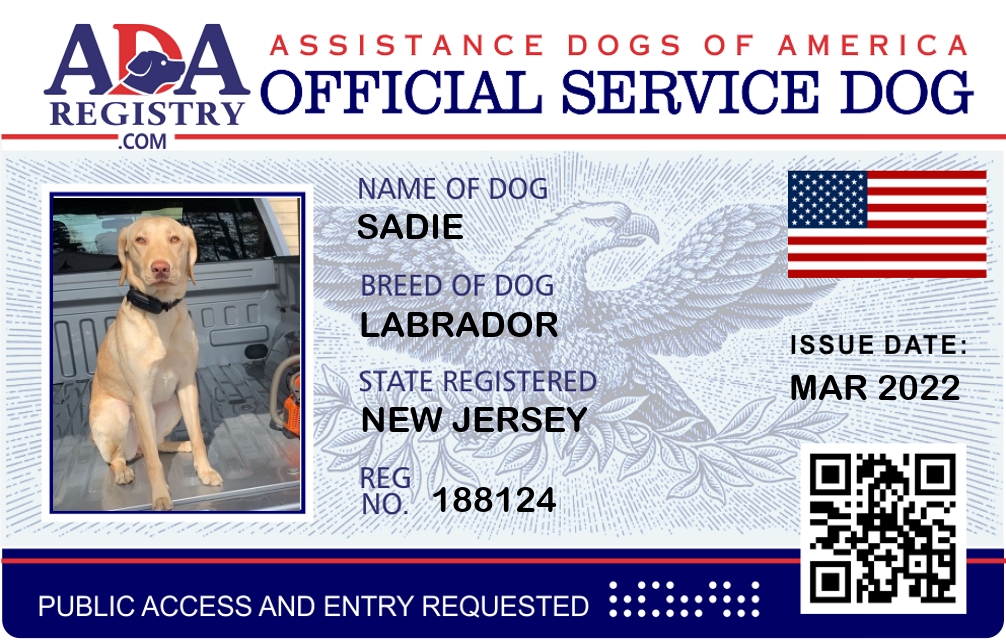 Service Dog Registration for Sadie