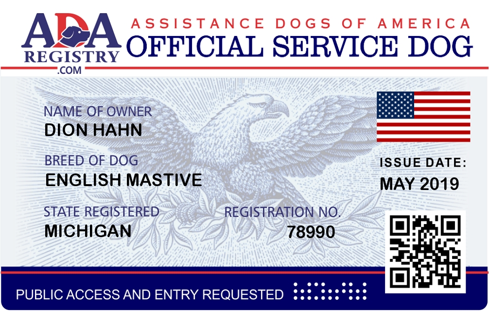 Service Dog Registration for Sadie maye