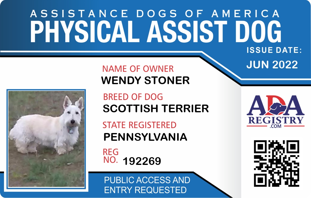 Registration Type: Brace / Mobility Assistance Dog Registration