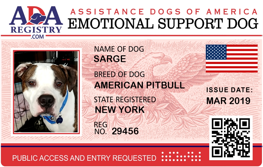 Emotional Support Dog Registration for Sarge