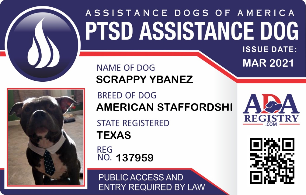 PTSD Assistance Dog Registration for Scrappy Ybanez