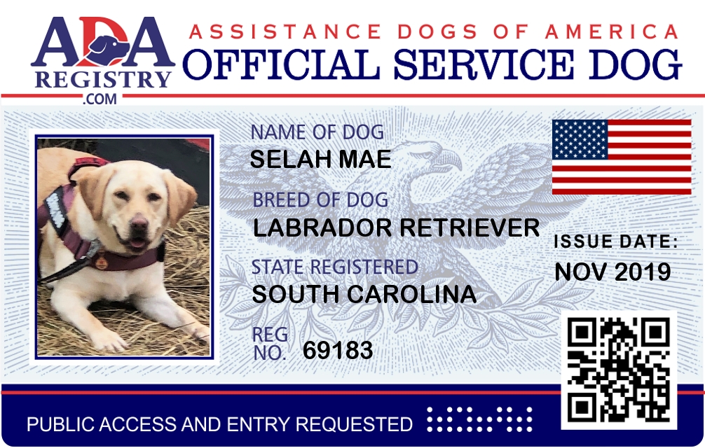 Selah is also trained to help with mobility issues I currently have. I am a retired firefighter and need both hips replaced. Selah currently has over 5000 public training hours, all documented. She was trained by me and I am now a member of APDT. I now professionally trained Service Dogs and basic to advanced obedience.