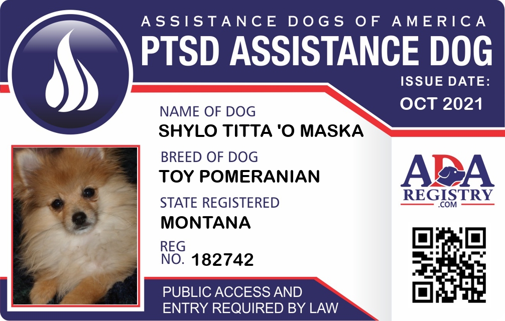 PTSD Assistance Dog Registration for Shylo Titta ‘O Maska