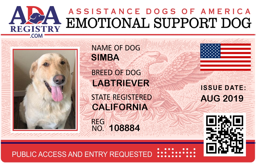 Emotional Support Dog Registration for Simba