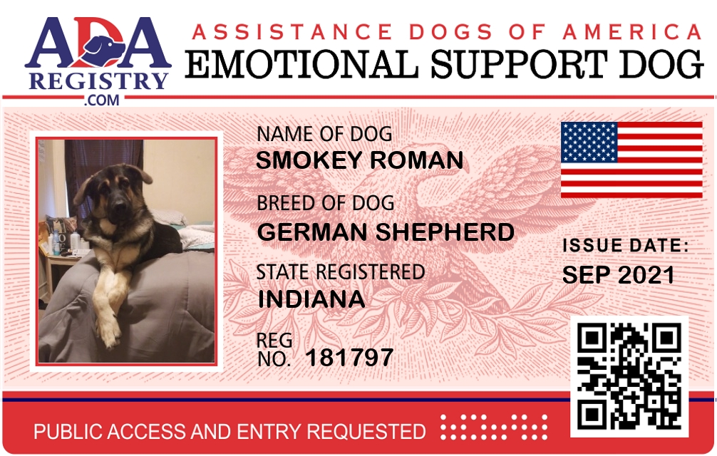 Emotional Support Dog Registration for Smokey Roman