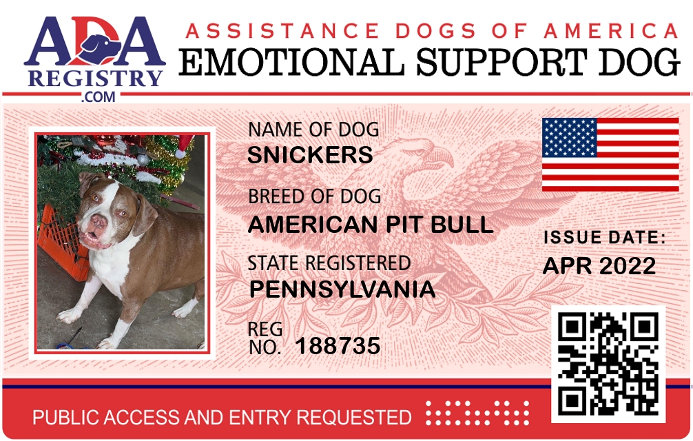 Emotional Support Dog Registration for Snickers