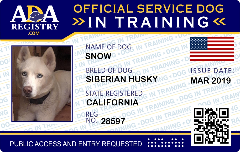 Member Since Mar 2019 Change registration status to Service Dog as Snow has finished her training as of March 2021.