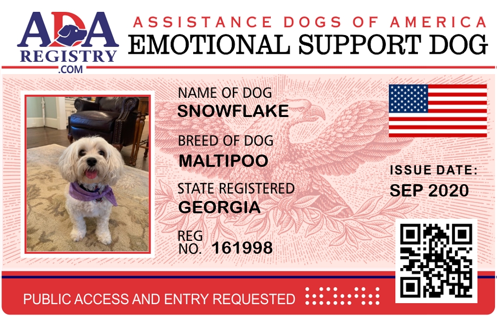 Emotional Support Dog Registration for Snowflake