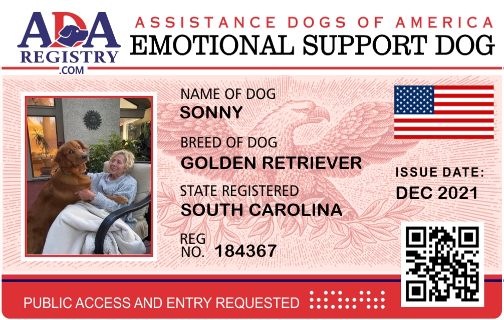 Emotional Support Dog Registration for Sonny