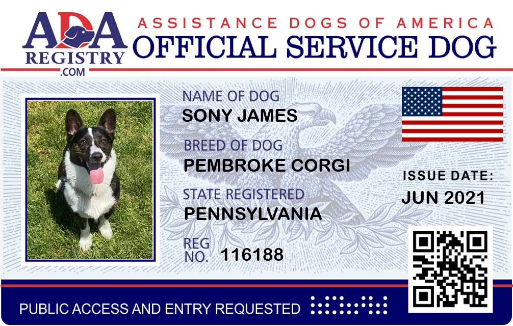 Service Dog Registration for Sony James