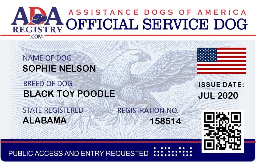 Service Dog Registration for Sophie Nelson