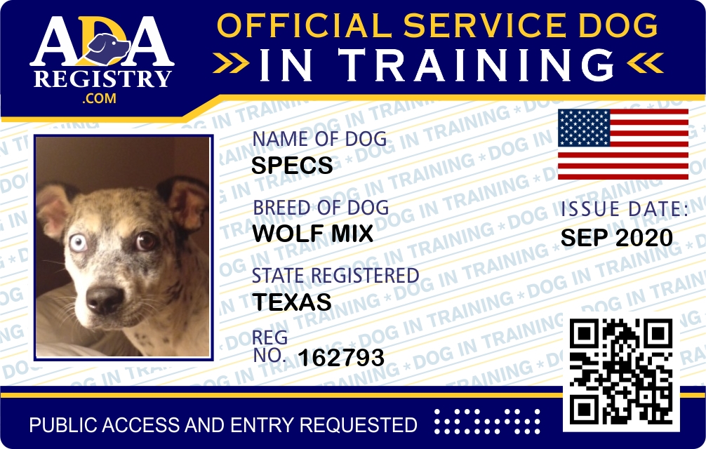 Service Dog In Training Registration for Specs