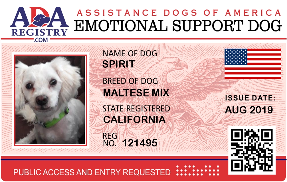 Emotional Support Dog Registration for Spirit