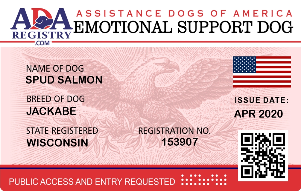 Emotional Support Dog Registration for Spud Salmon