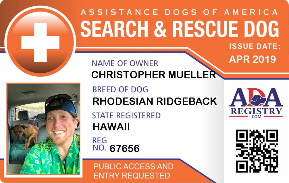 Registration Type: Search And Rescue Dog Registration