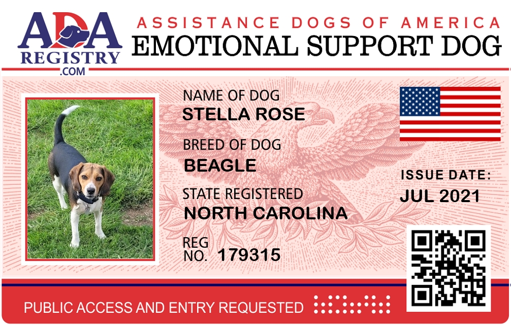 Emotional Support Dog Registration for Stella Rose