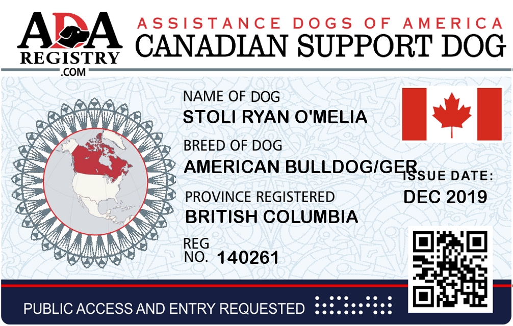 Emotional Support Dog Registration for Stoli Ryan O’melia