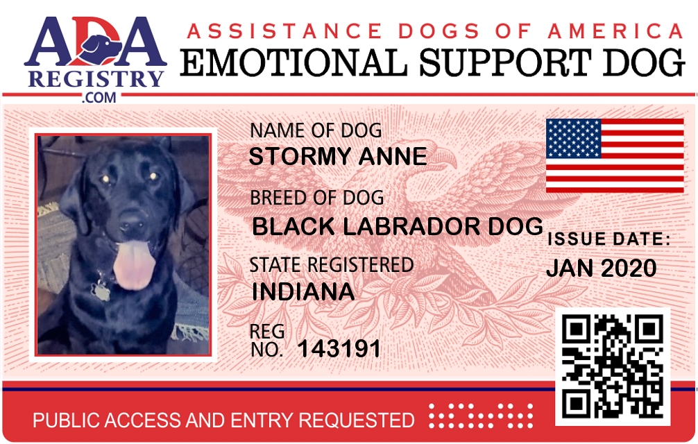 Emotional Support Dog Registration for Stormy Anne