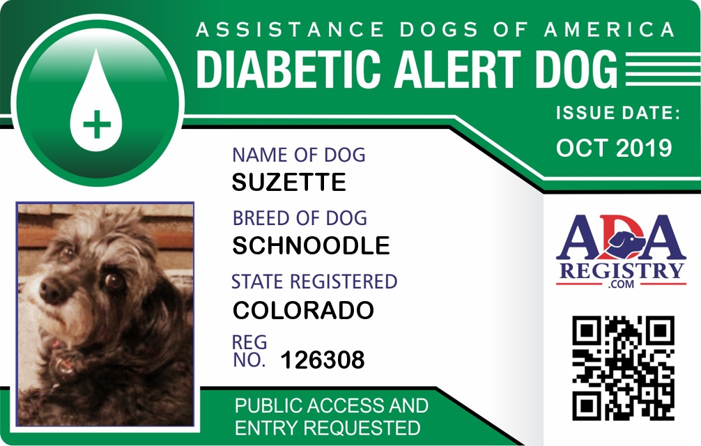 Diabetic Alert Dog Registration for Suzette
