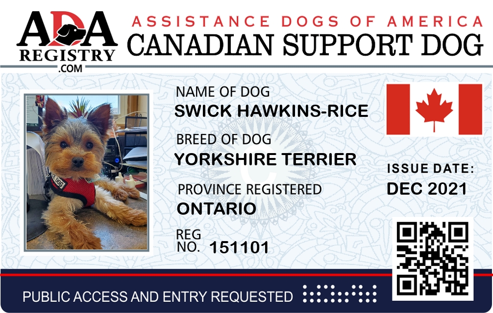 Emotional Support Dog Registration for Swick Hawkins-Rice
