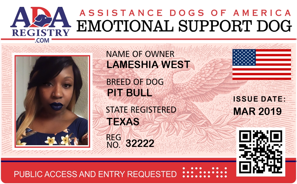 Emotional Support Dog Registration for Tank “Bam Bam” Hall