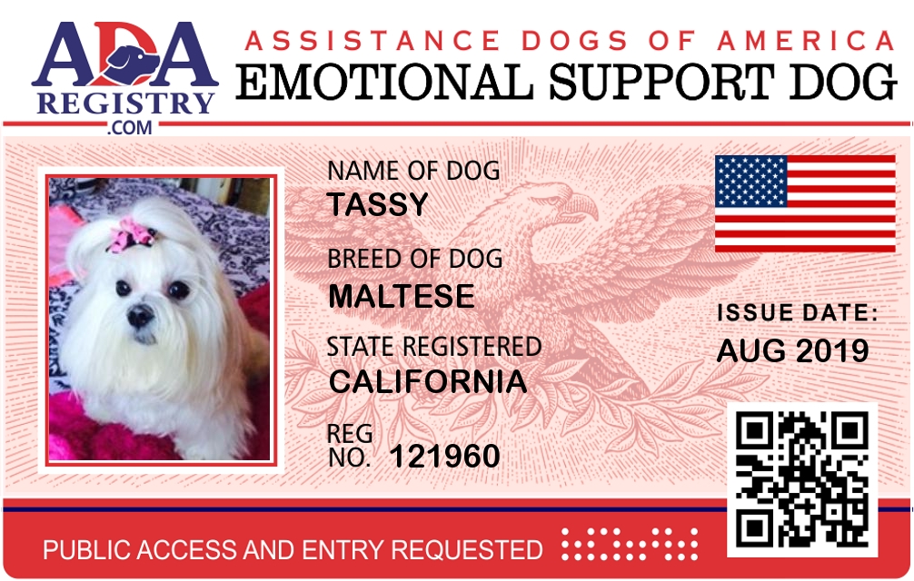 Emotional Support Dog Registration for Tassy