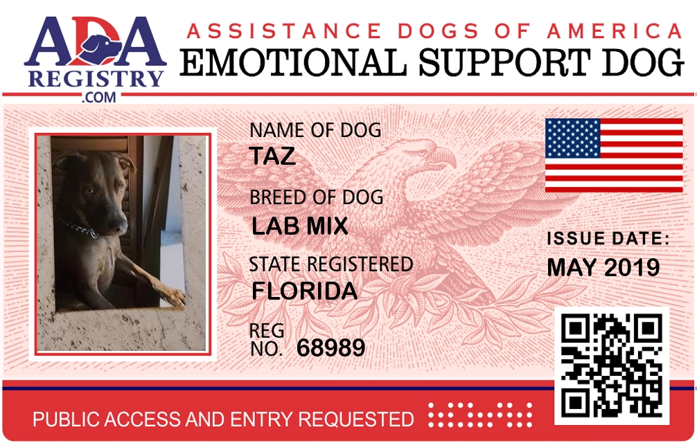 Emotional Support Dog Registration for TAZ