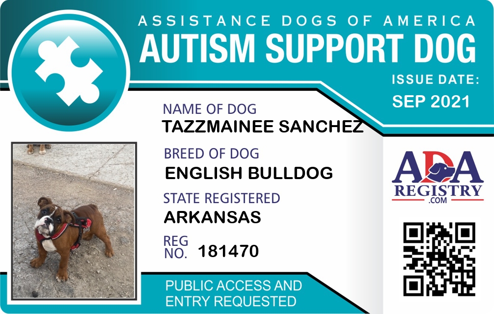 Autism Assistance Dog Registration for TazzMainee Sanchez