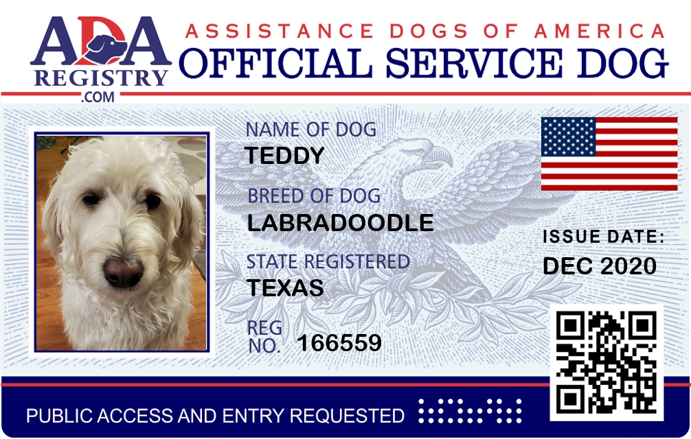 Service Dog Registration for Teddy
