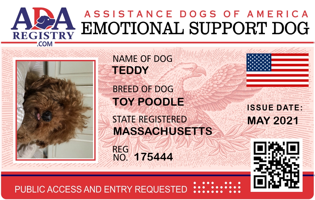 Emotional Support Dog Registration for Teddy