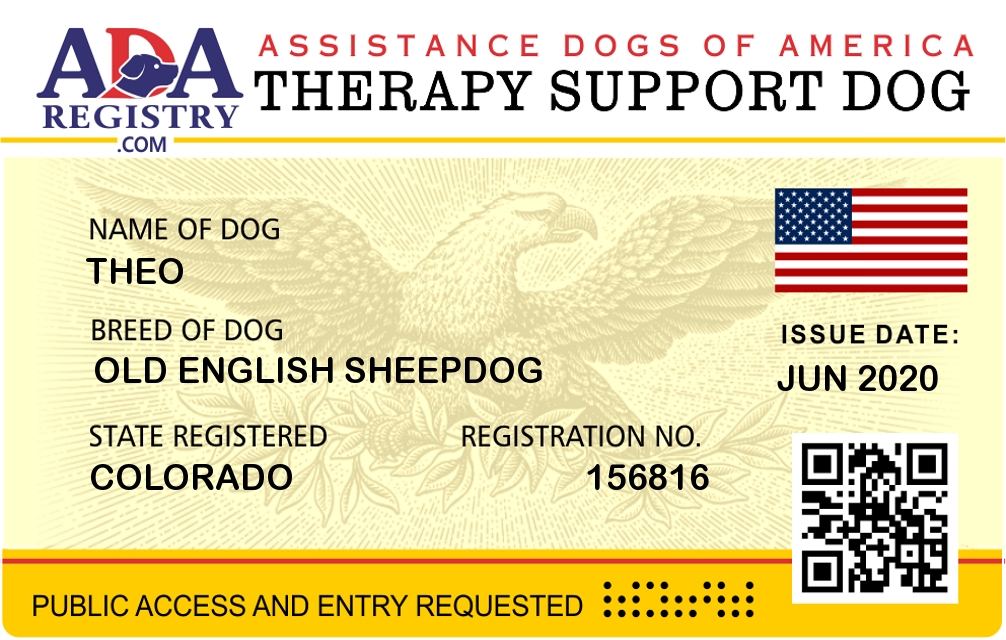 Therapy Dog Registration for Theo