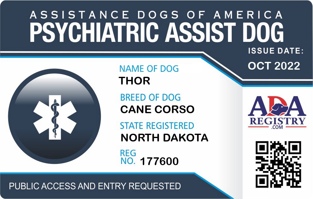 Psychiatric Service Dog Registration for Thor