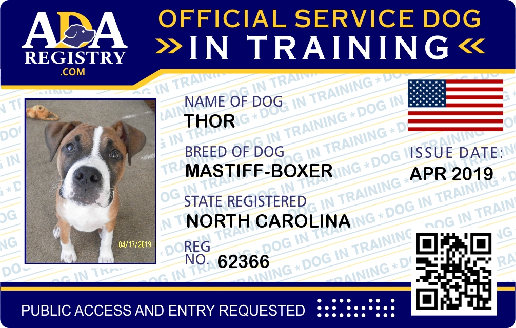 Service Dog In Training Registration for Thor