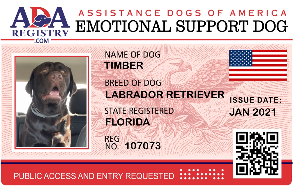 Emotional Support Dog Registration for Timber