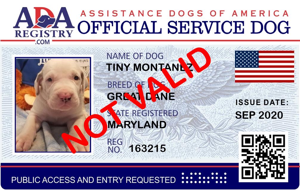 Service Dog Registration for Tiny Montanez