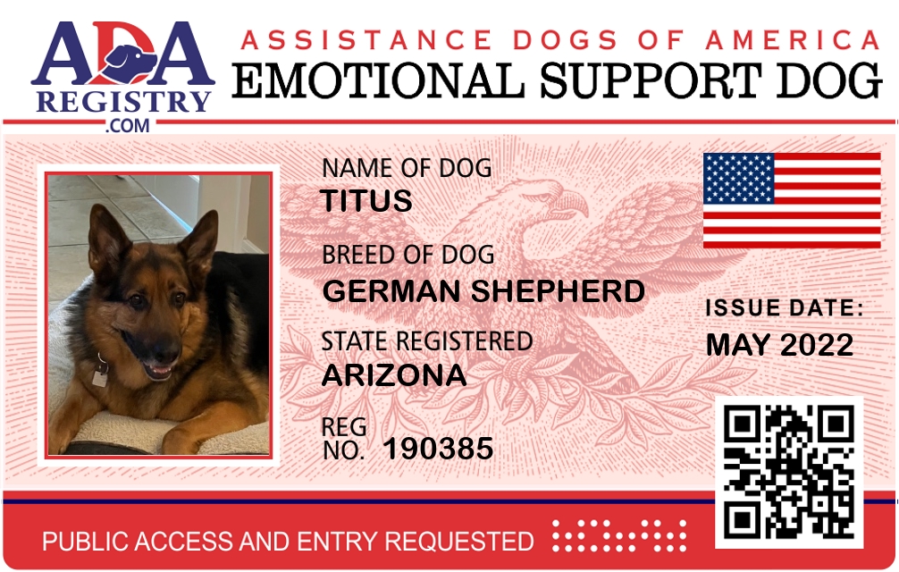 Emotional Support Dog Registration for Titus