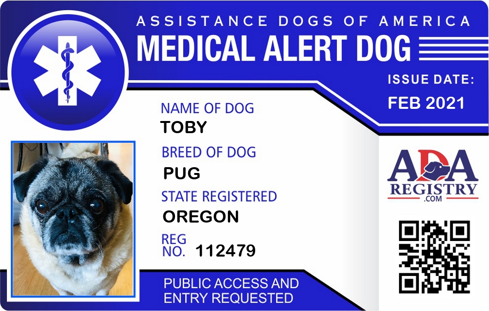 Medical Alert Dog Registration for Toby