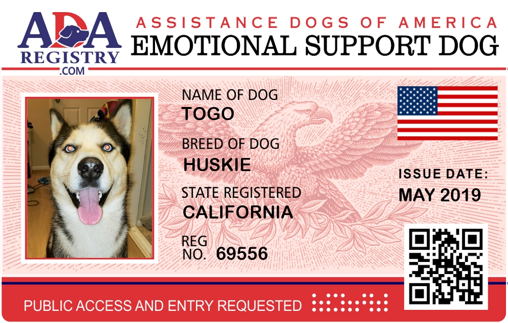 Emotional Support Dog Registration for TOGO