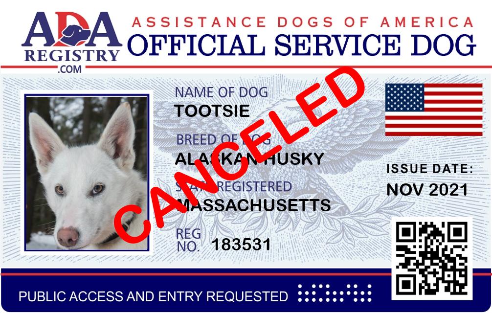 Service Dog Registration for Tootsie