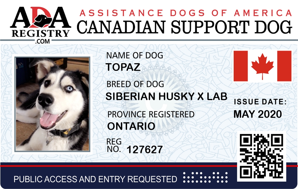 Emotional Support Dog Registration for Topaz