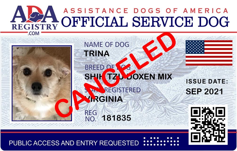 Service Dog Registration for Trina