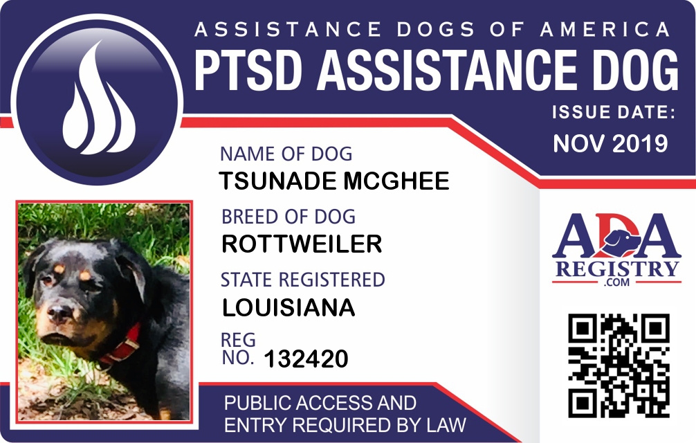 PTSD Assistance Dog Registration for Tsunade McGhee