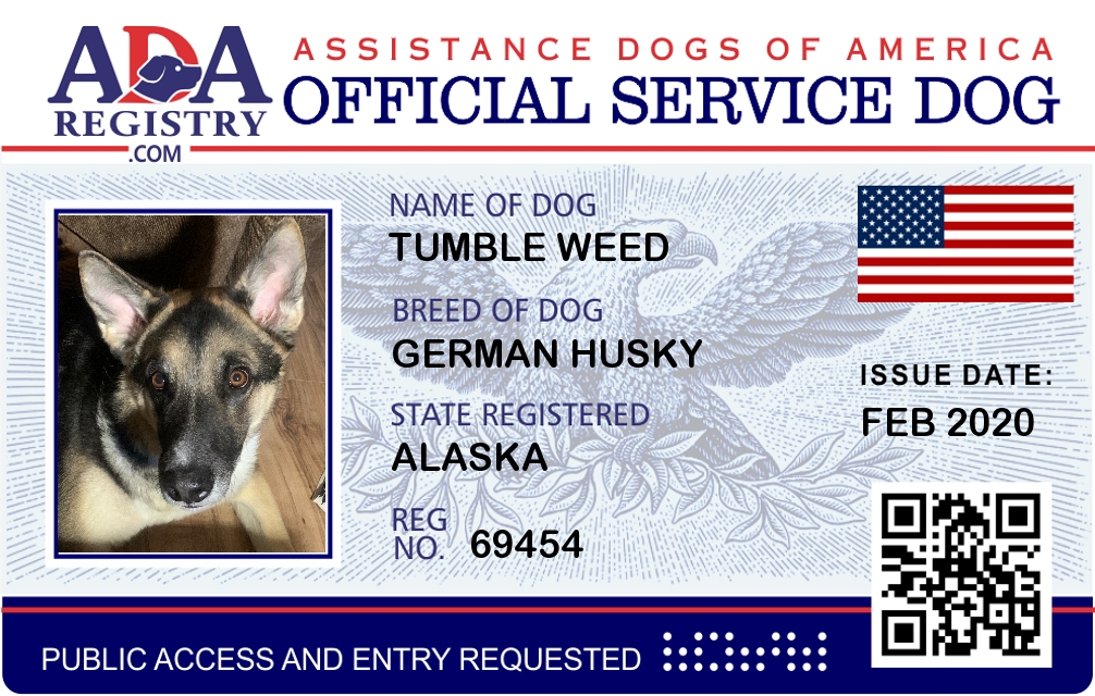 Service Dog Registration for Tumble Weed