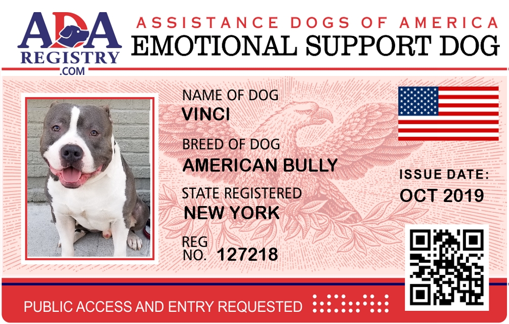 Emotional Support Dog Registration for Vinci